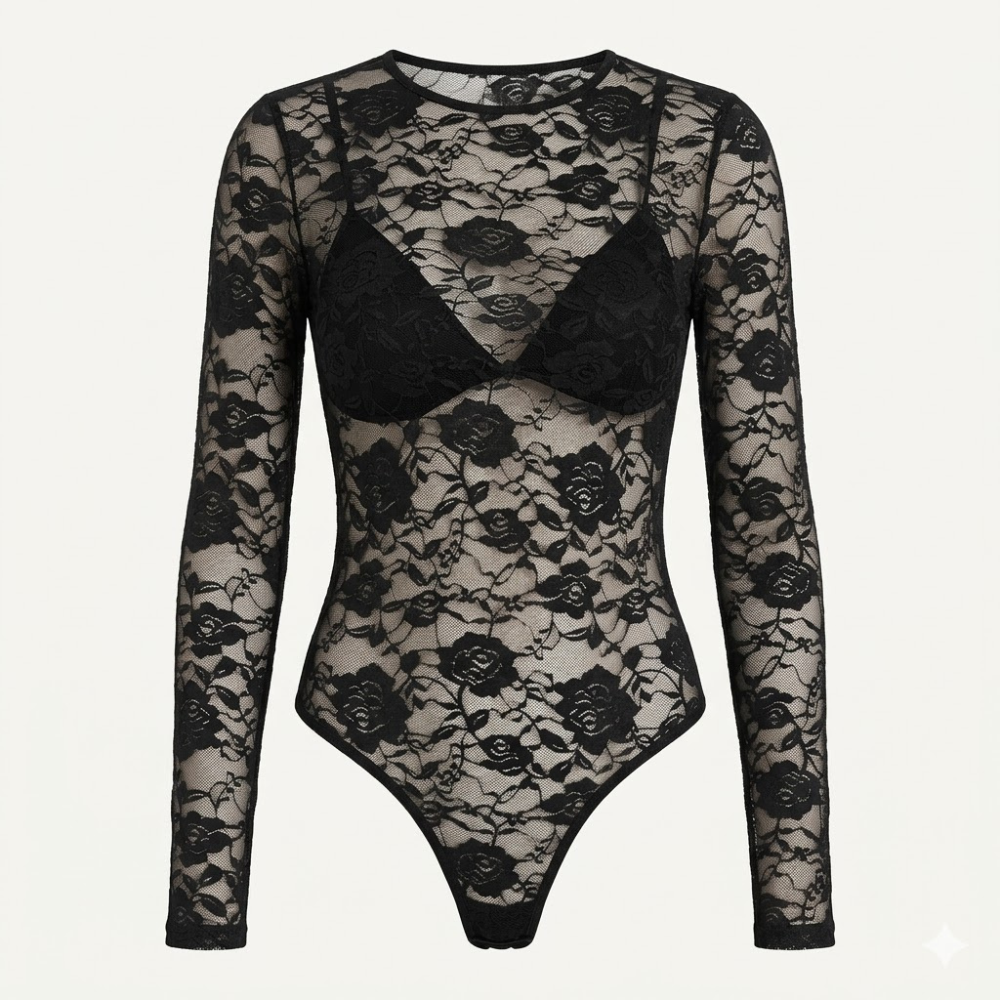 For a modern vamp romantic twist, style a lace bodysuit with high-waist wide-leg trousers. Add pointed boots and subtle gold accessories to elevate the look.
