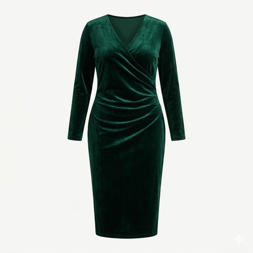 Velvet is a key fabric in dark feminine fashion for 2026. A fitted velvet dress paired with knee-high boots creates a luxurious silhouette that feels romantic and bold at the same time.
